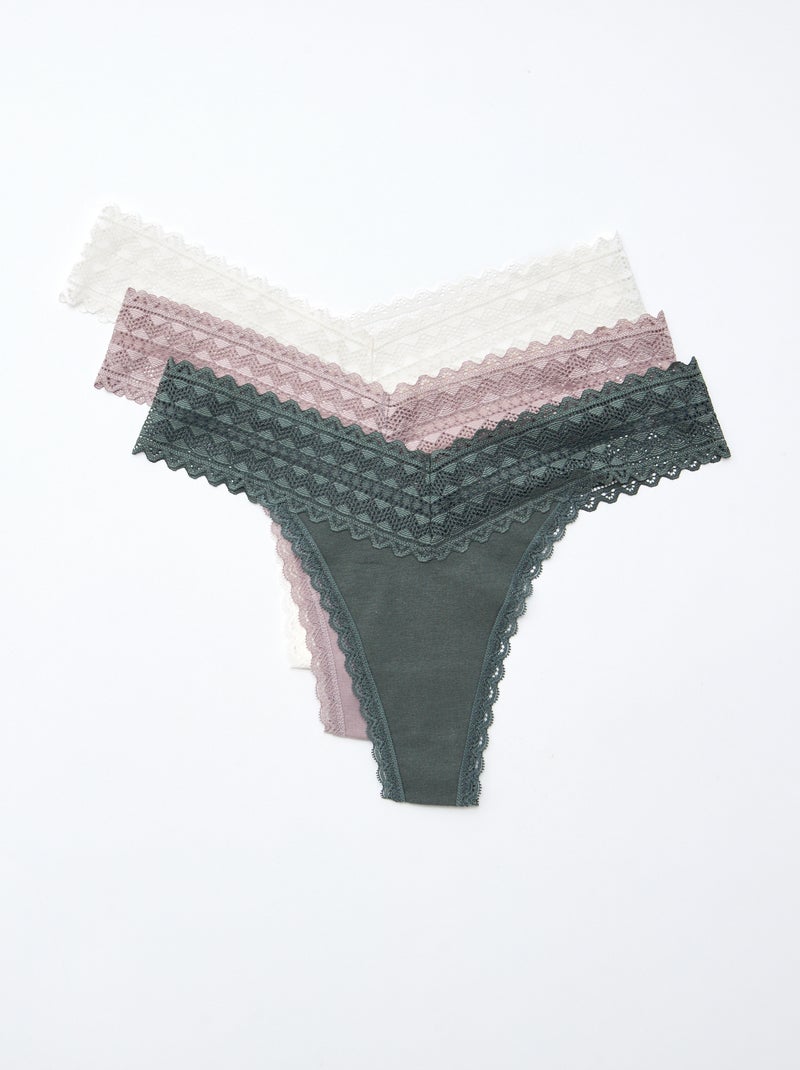 Lot de 3 strings coton et dentelle - Blanc/gris/rose