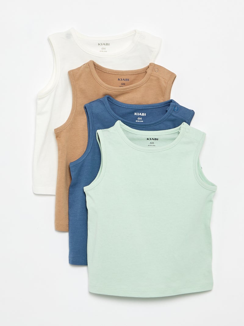 Un lot de 4 débardeurs basiques pour habiller bébé tout l'été.