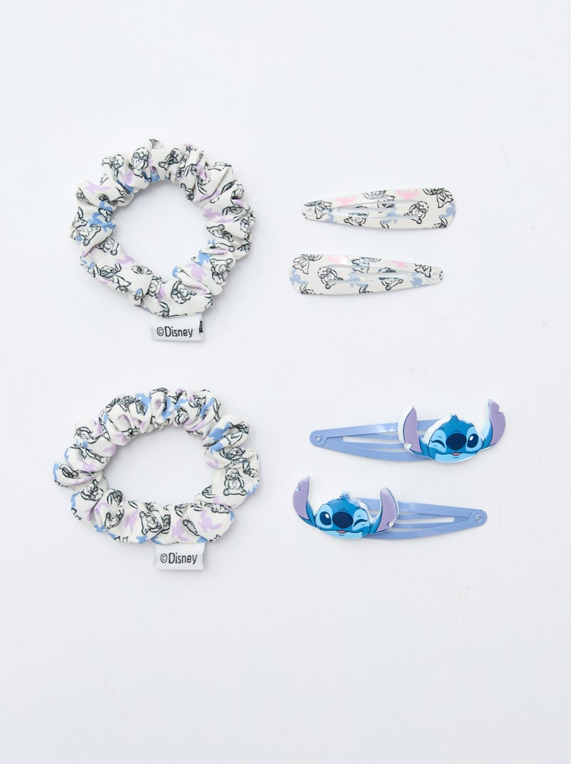 Lot de 4 pinces + 2 élastiques 'Stitch' - Bleu