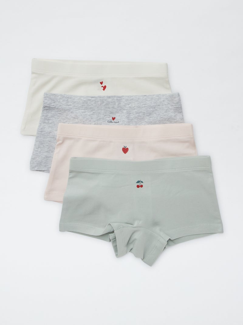 Lot de 4 shorties imprimé - Rose/vert/blanc/gris