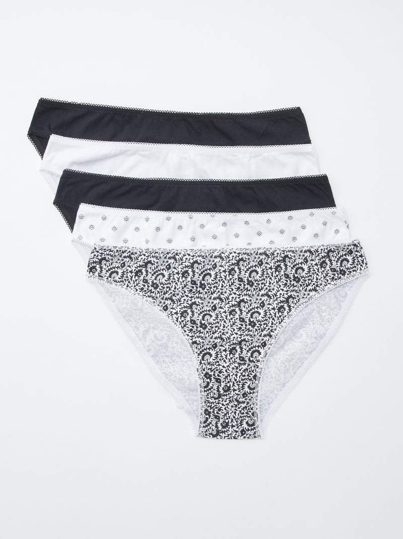 Lot de 5 culottes - unies et imprimées - Blanc/noir