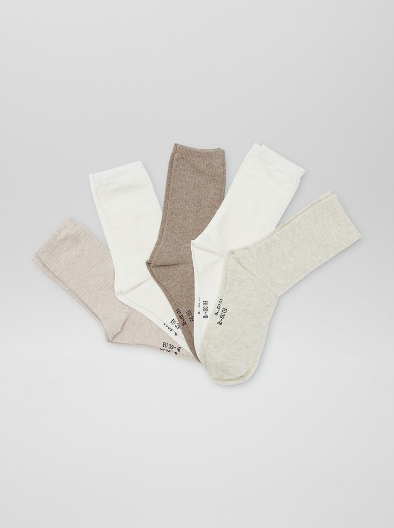 Lot de 5 paires de chaussettes - Beige/blanc