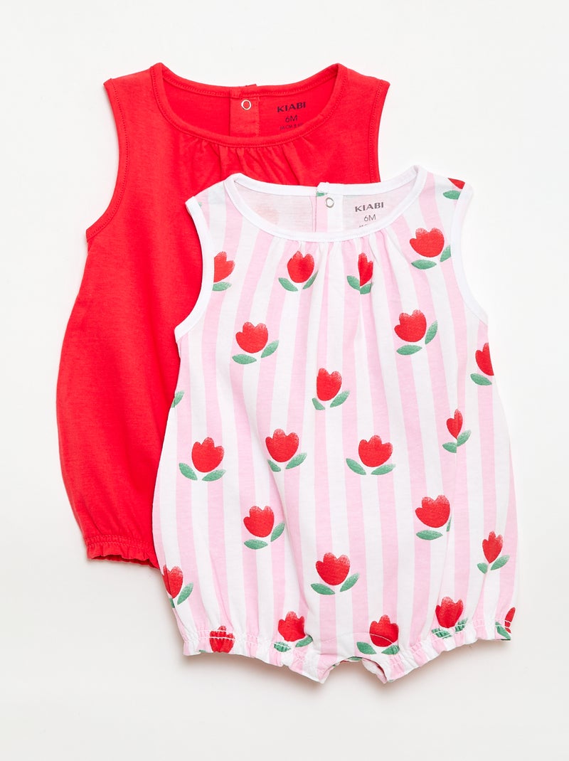 Lots de 2 barboteuses sans manches - Rose
