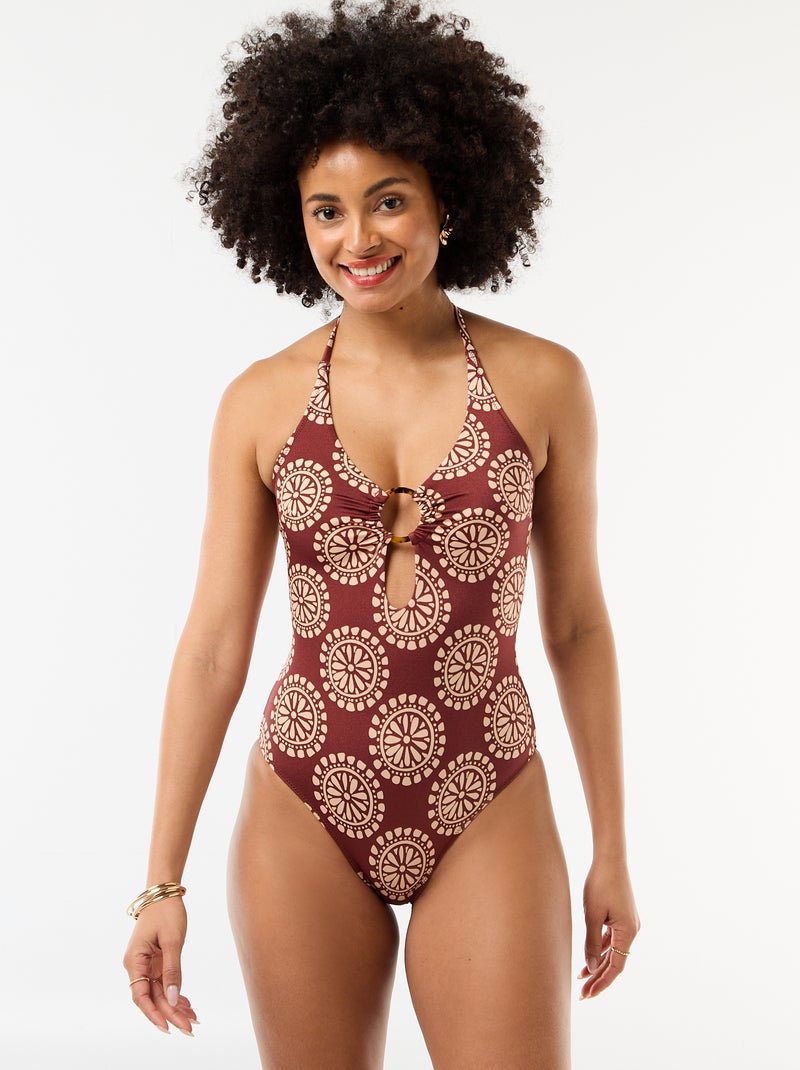 Maillot de bain 1 pièce imprimé avec décolleté fantaisie - Marron