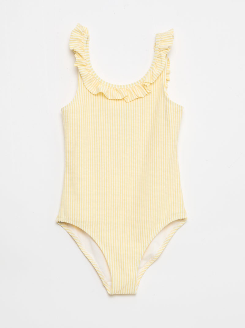 Maillot de bain rayé volanté extensible - Jaune