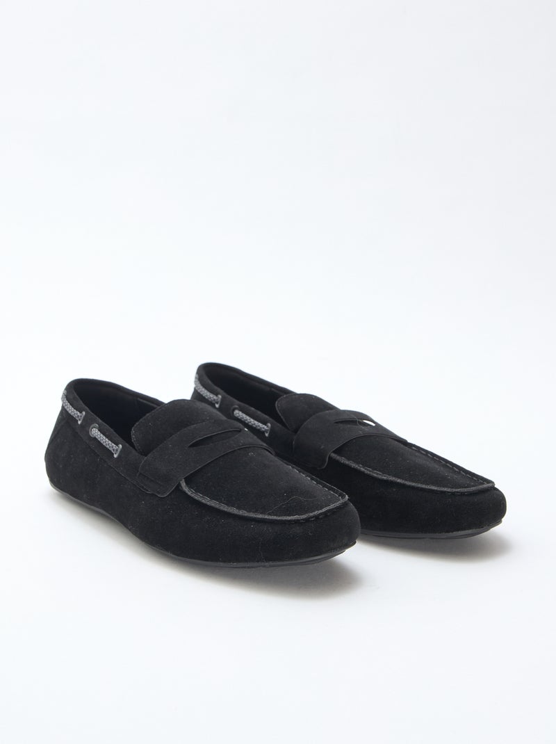 Mocassins bateau en suédine unie - Noir