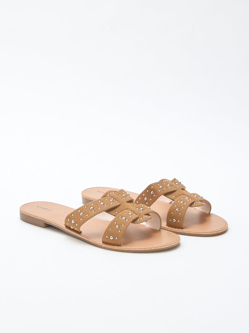 Mules avec bride en macramé brillant - Marron