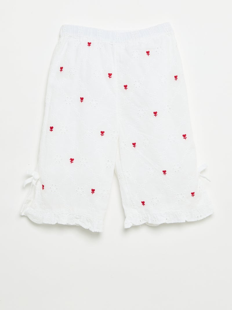 Pantalon avec nœuds fantaisie et broderies anglaises - Blanc