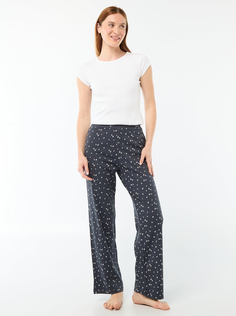 Pantalon côtelé de nuit all-over 'fleur' - Bleu