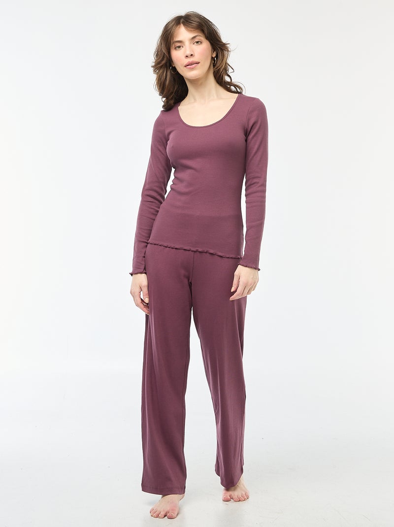 Pantalon côtelé de nuit all-over 'fleur' - Violet