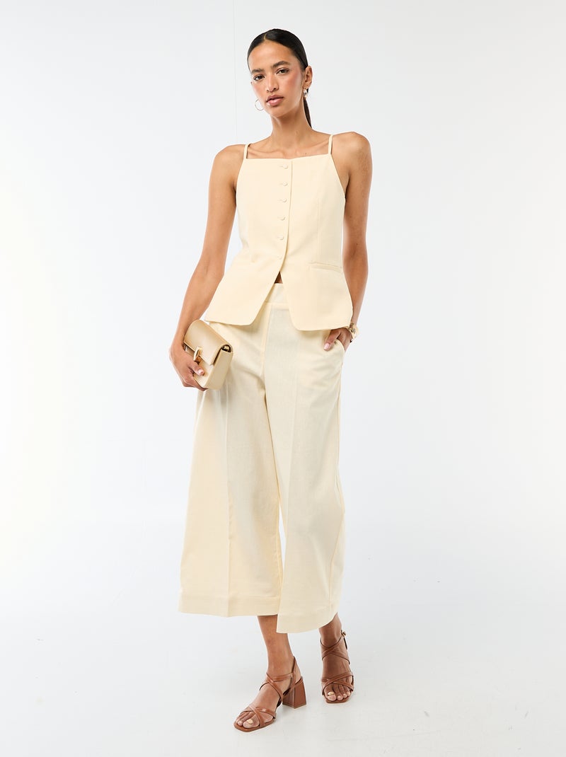 Pantalon culotte large en lin mélangé - Beige