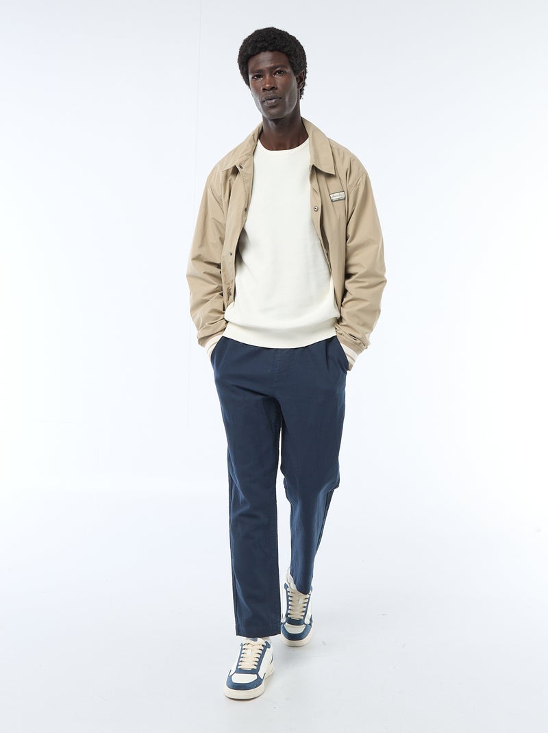 Pantalon droit à taille élastiquée - Bleu marine