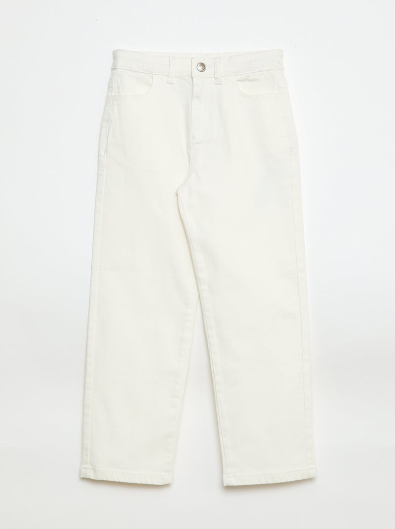 Pantalon en twill avec ouverture pressionnée - Coupe + confortable - Blanc
