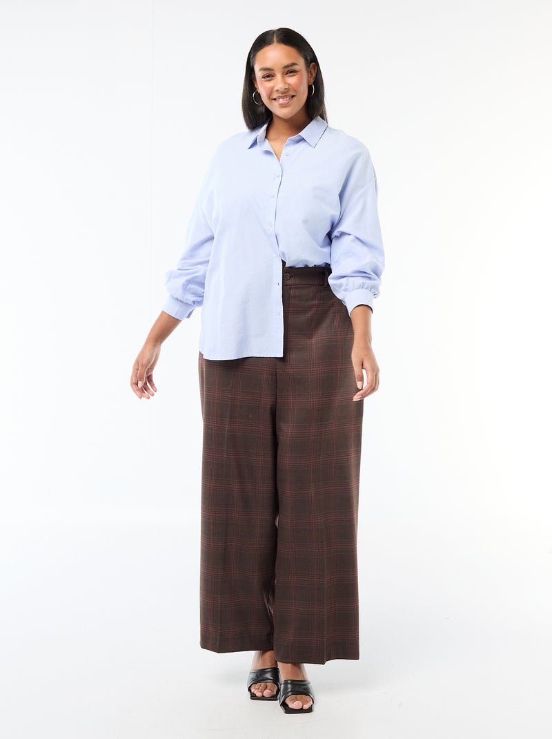 Pantalon large à carreaux - Marron
