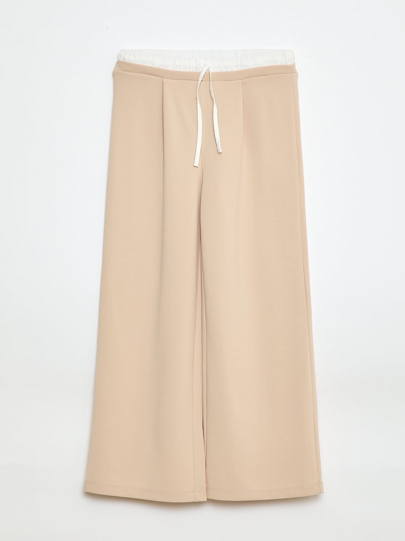 Pantalon large avec effet 2 en 1 avec style caleçon - Beige