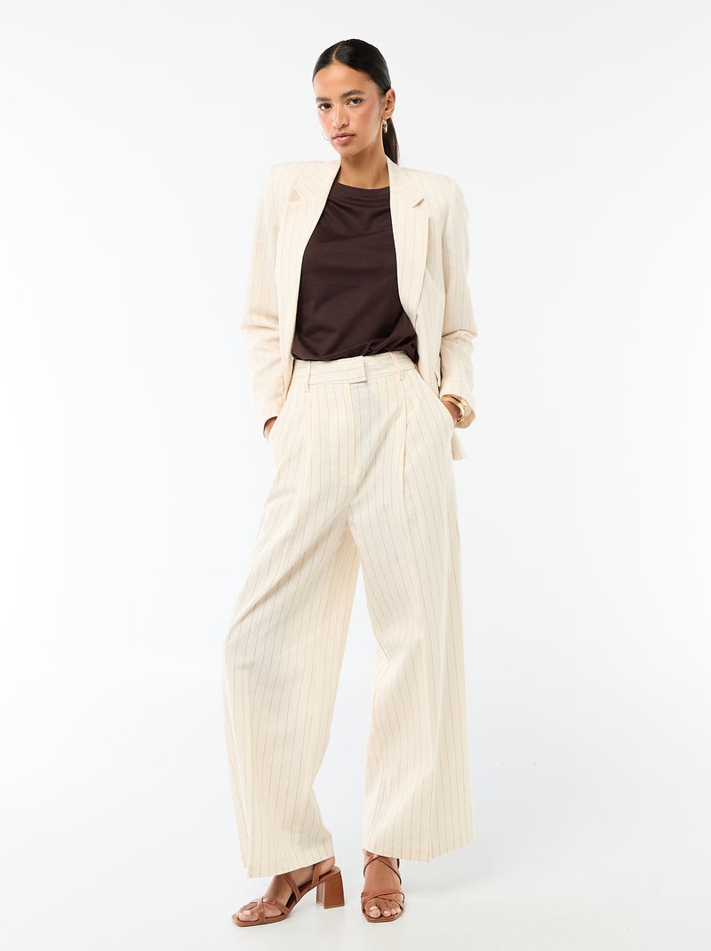 Pantalon large de cérémonie en lin mélangé - Beige