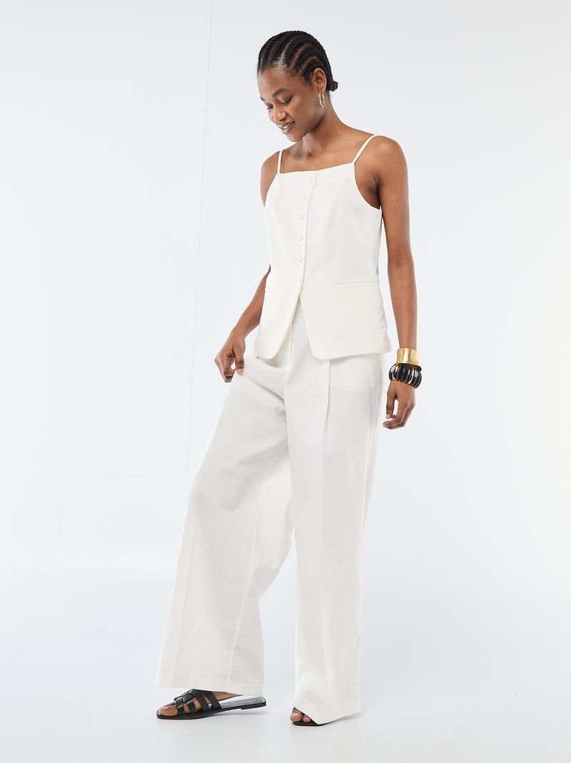 Pantalon large de cérémonie en lin mélangé - Blanc