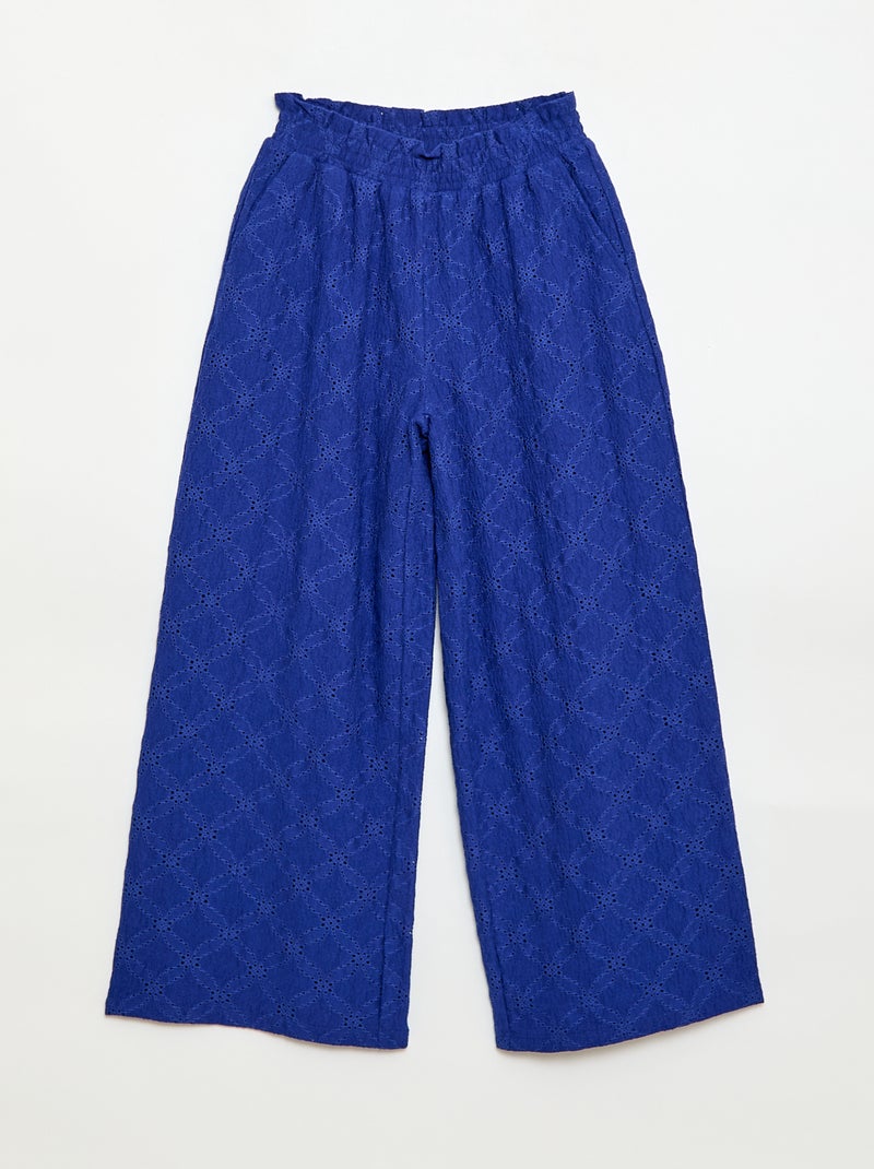 Pantalon large en broderie anglaise - Bleu