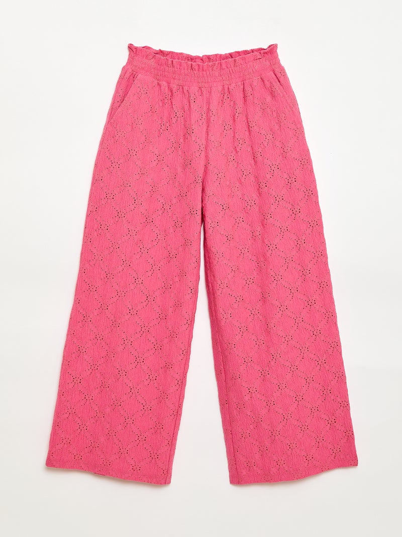 Pantalon large en broderie anglaise - Rose