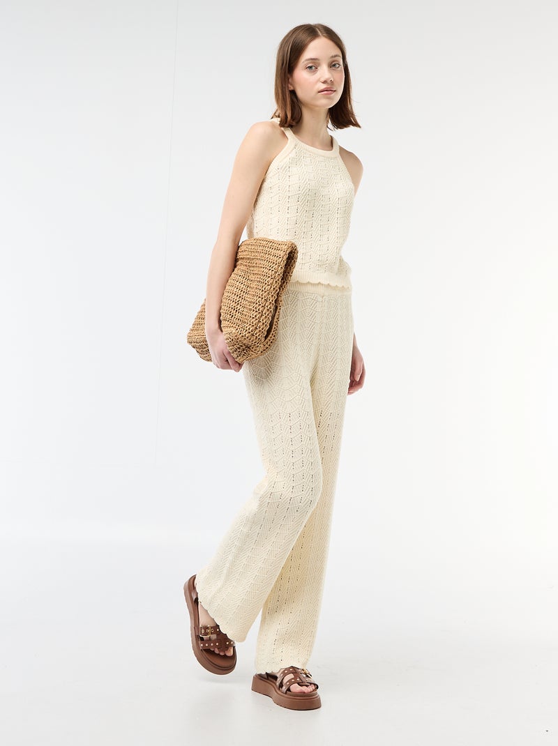 Pantalon large en crochet - Beige