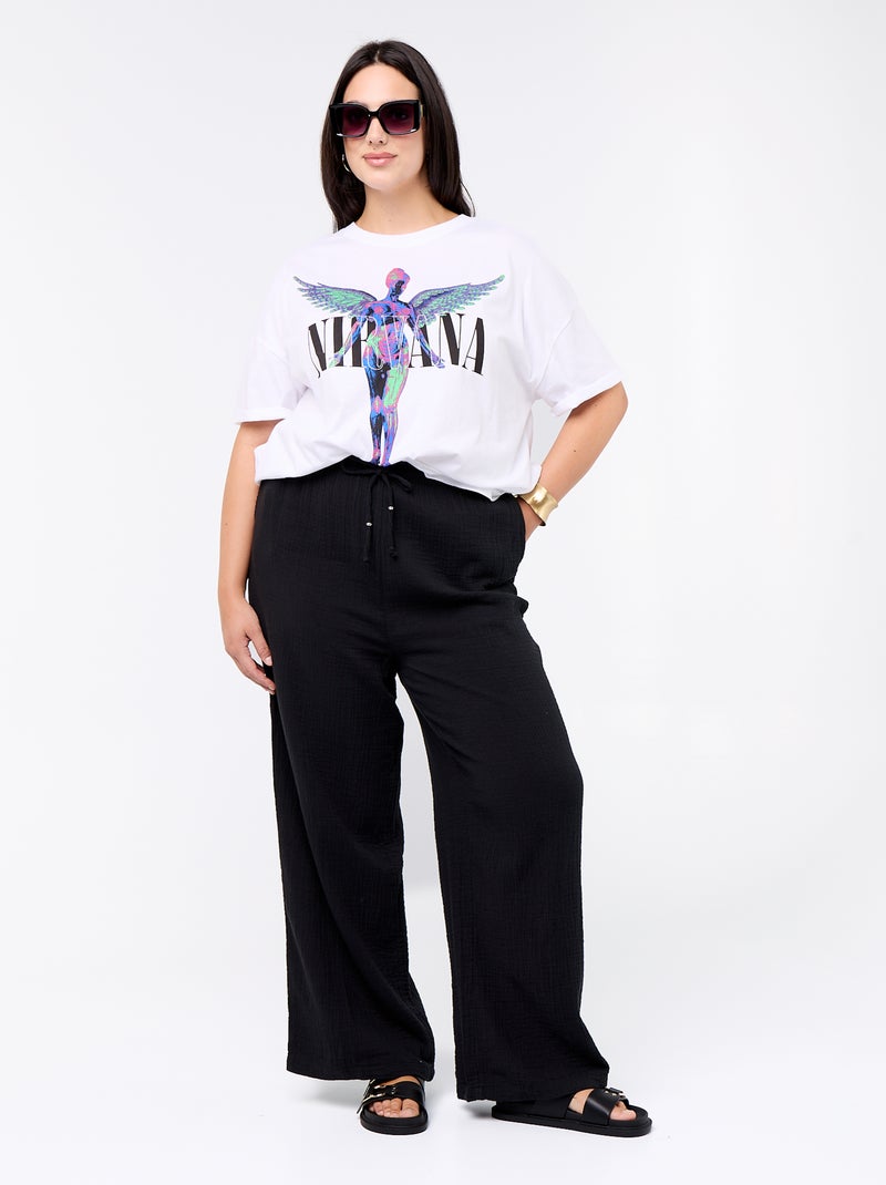 Pantalon large en gaze de coton - Noir