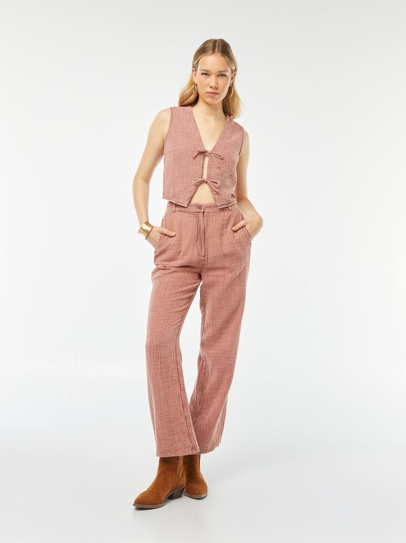 Optez pour un look décontracté avec ce pantalon large en gaze de coton !