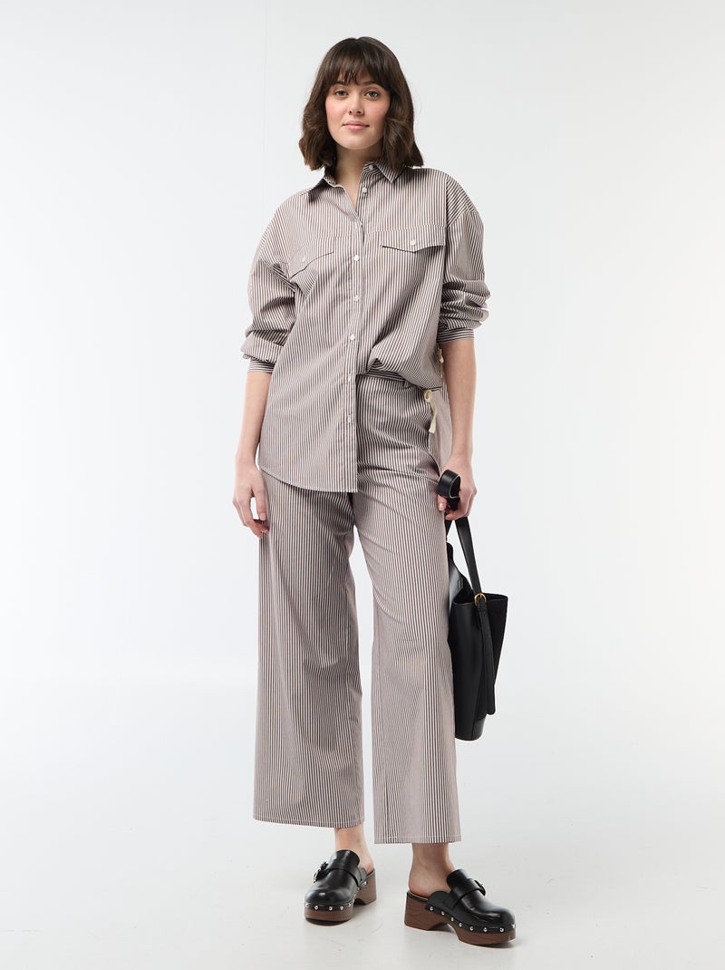 Pantalon large rayé - Beige
