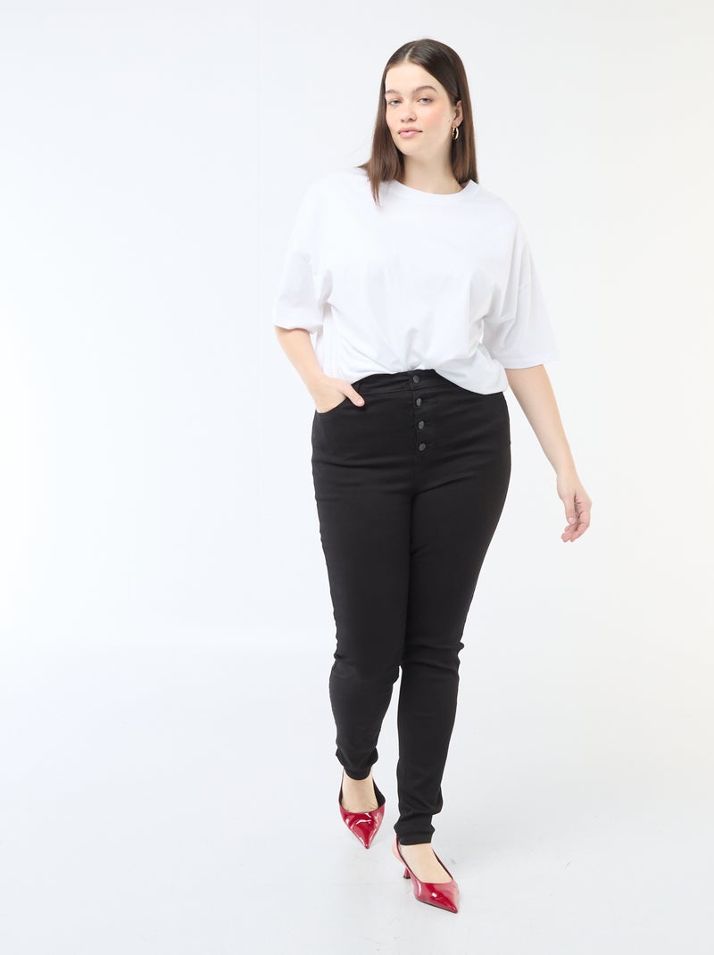 Le pantalon skinny à taille très haute pour une silhouette valorisée.