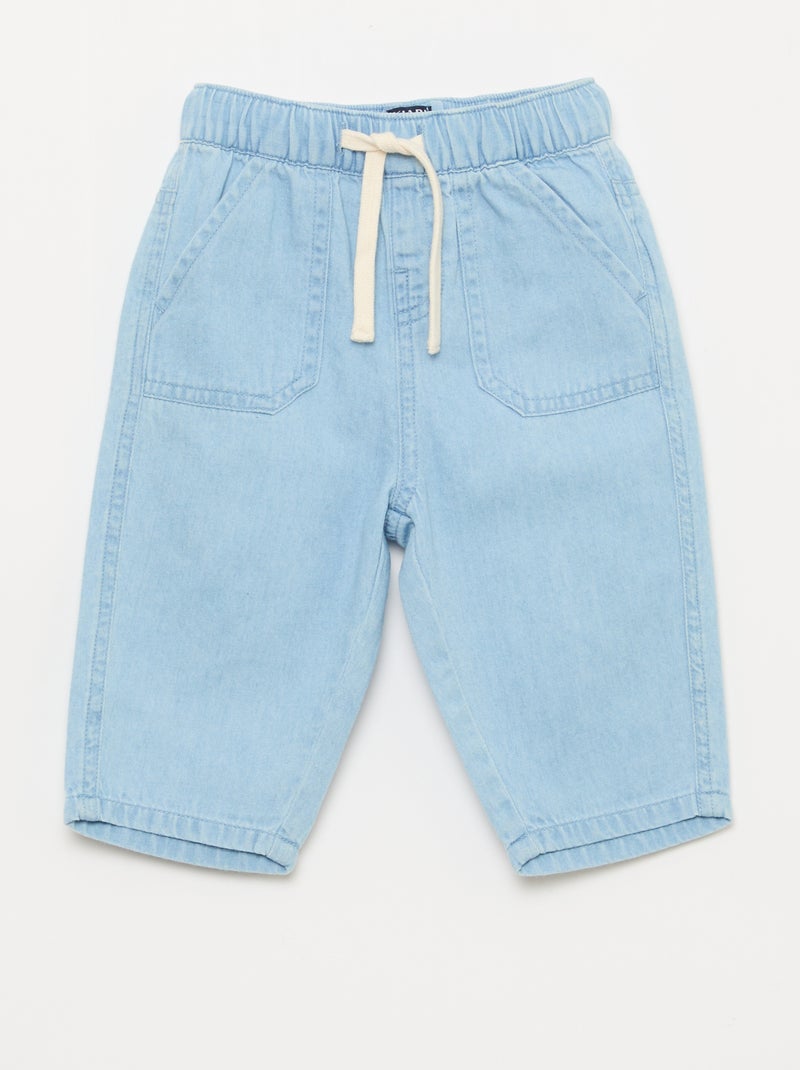 Pantalon uni relax fit avec 2 poches plaquées - Bleu