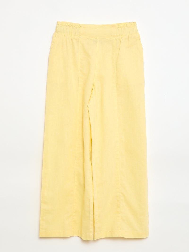 Pantalon wide leg/coupe large en coton tissé - Jaune