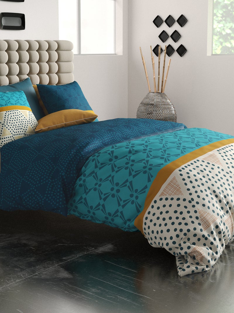 Parure de lit imprimée housse de couette + 2 taies - 2 personnes - Bleu