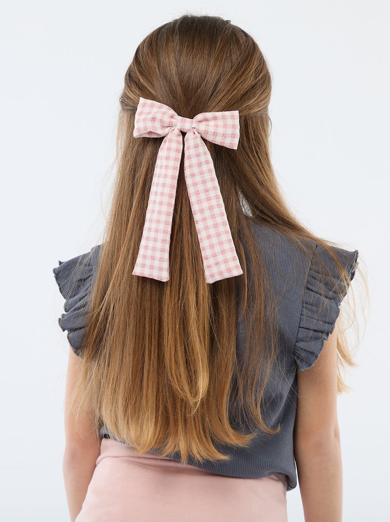 Pince croco avec nœud fantaisie et ruban - Rose
