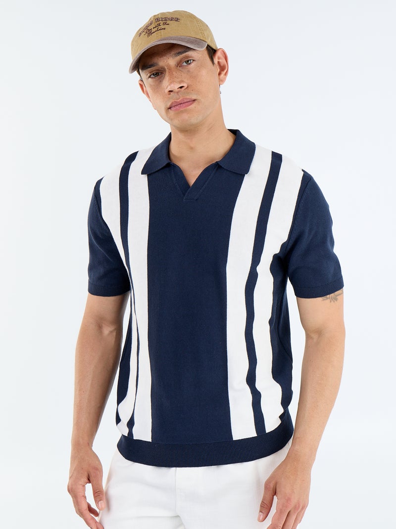 Polo à manches courtes col sans bouton - Bleu