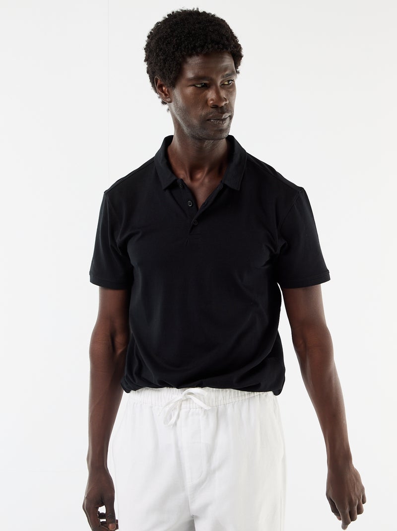 Polo en jersey avec col boutonné - Noir