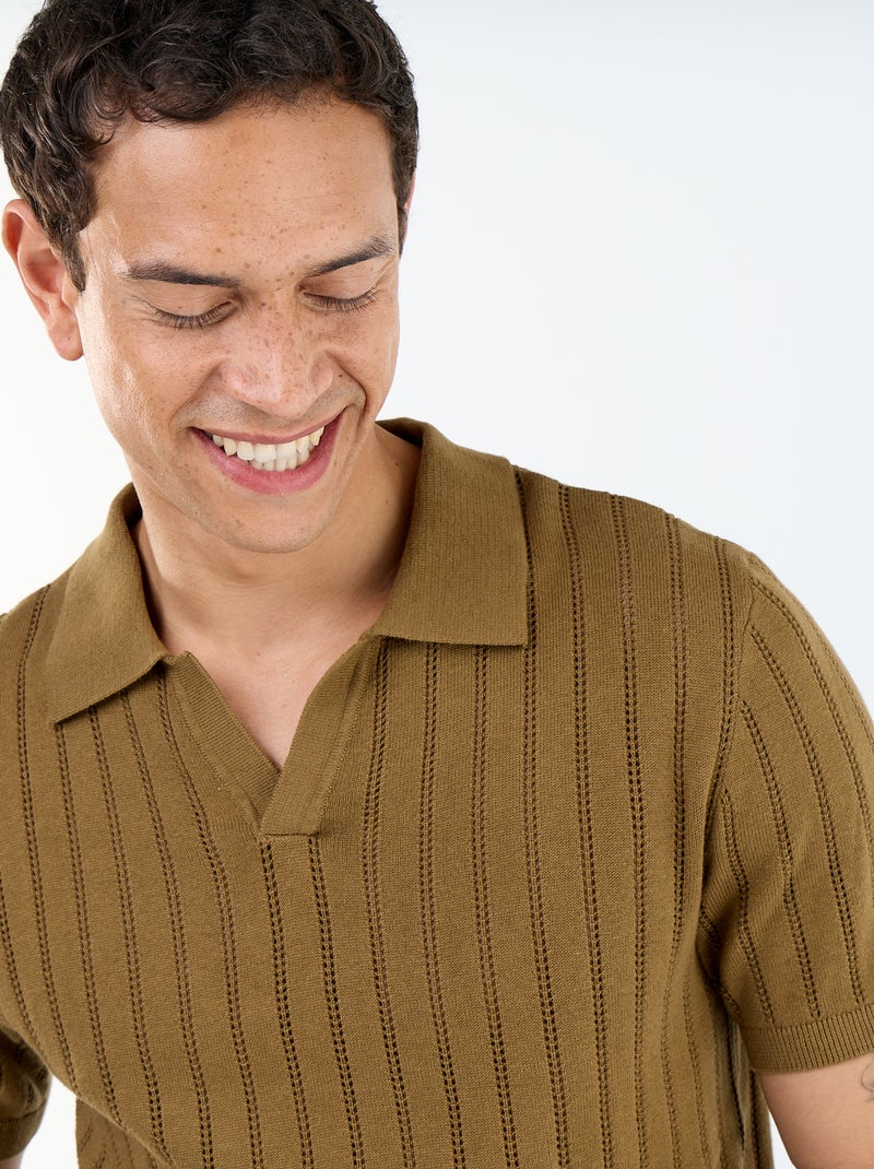 Polo en maille ajourée manches courtes - Marron