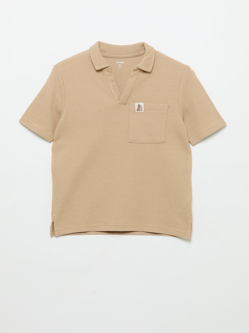 Polo en matière en nid d'abeilles - Beige