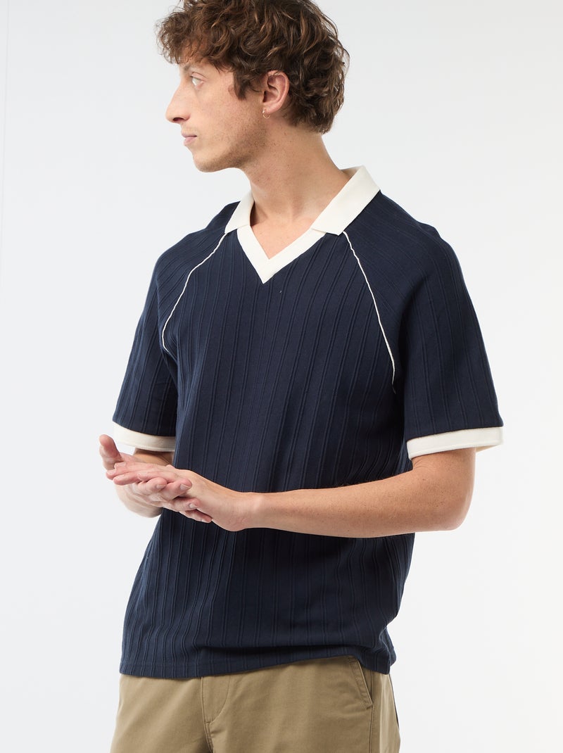 Polo en matière fantaisie col polo sans boutons - Bleu