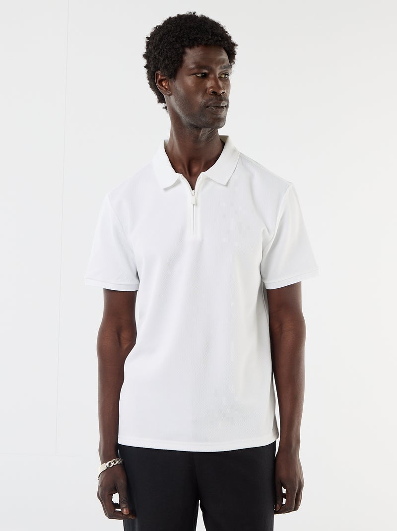 polo en nid d'abeilles avec col zippé - Blanc