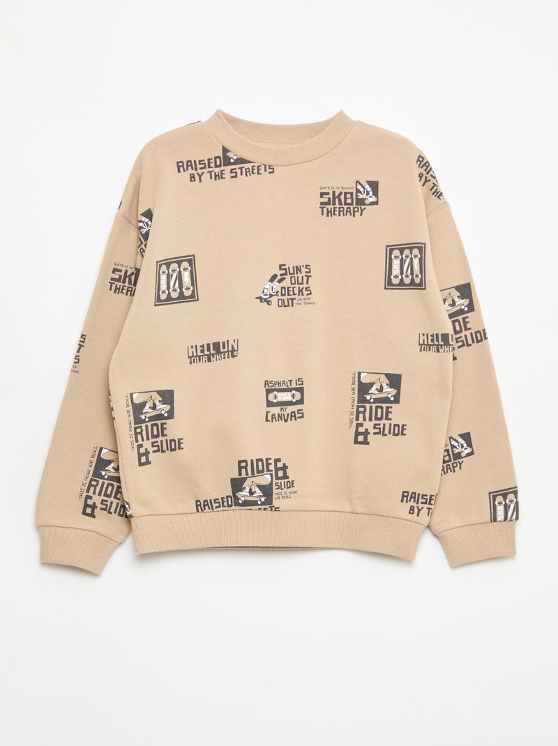 Pull col rond imprimé en coton - Beige