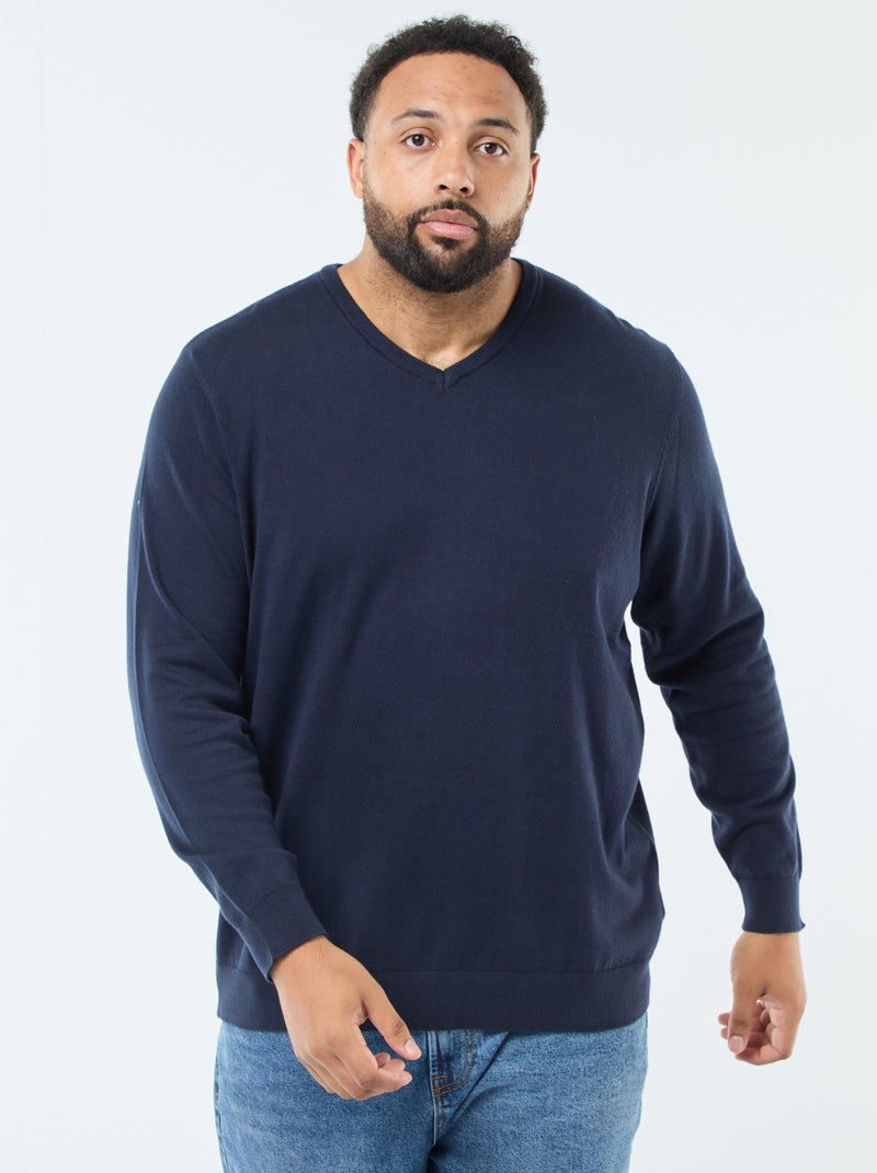 Pull col V en maille fine jauge - Bleu marine