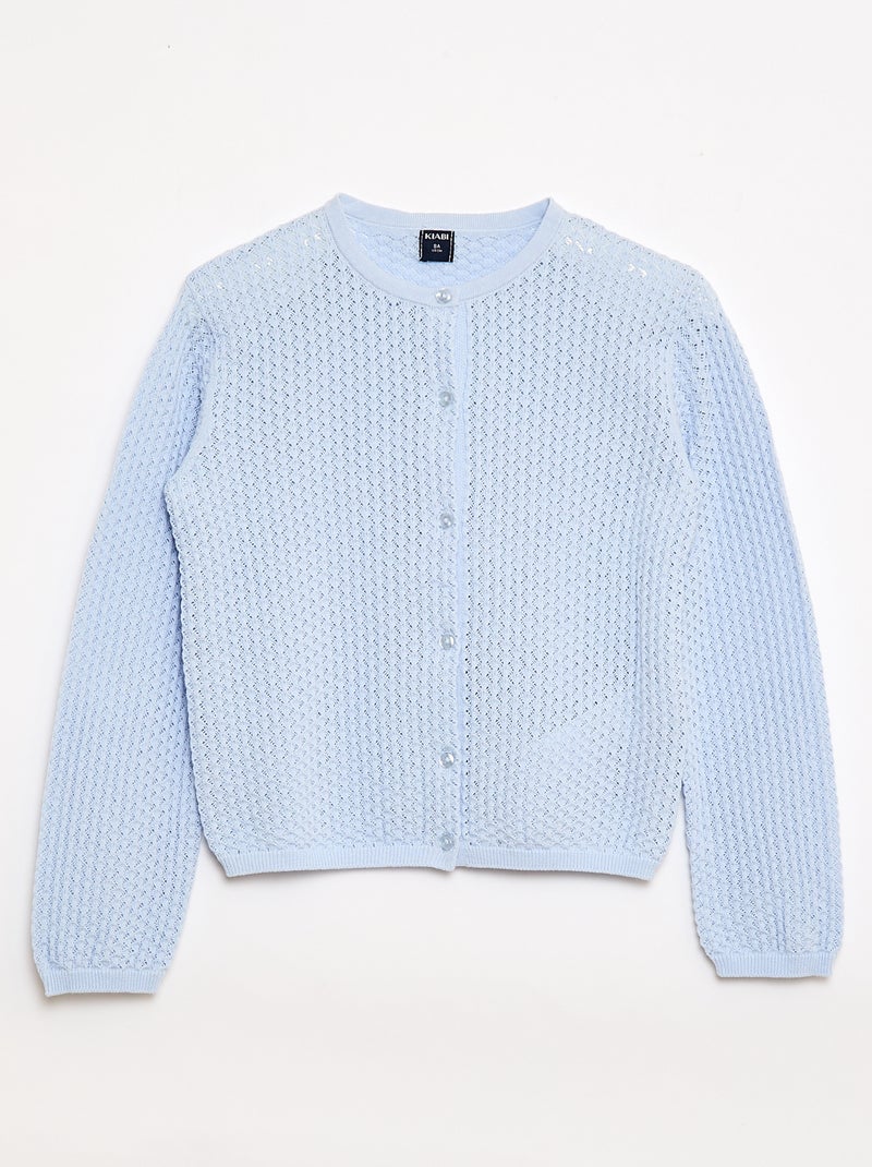 Pull en maille ajourée à col rond - Bleu