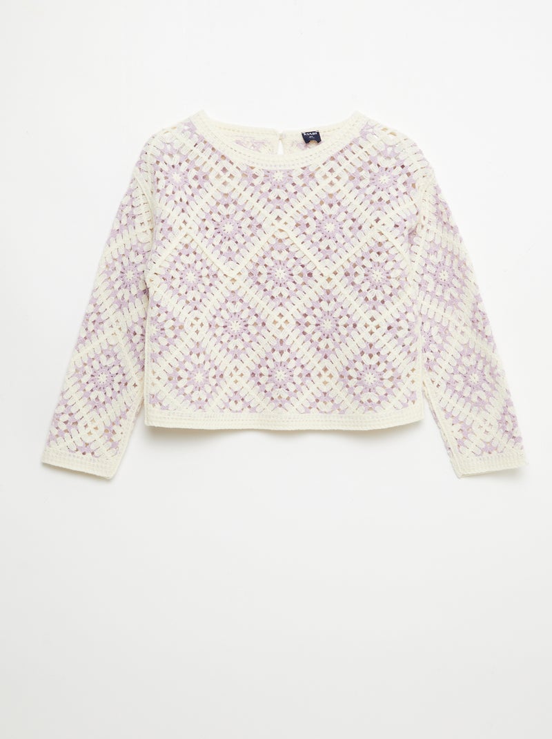 Pull en maille ajourée avec broderies fleurs - Violet