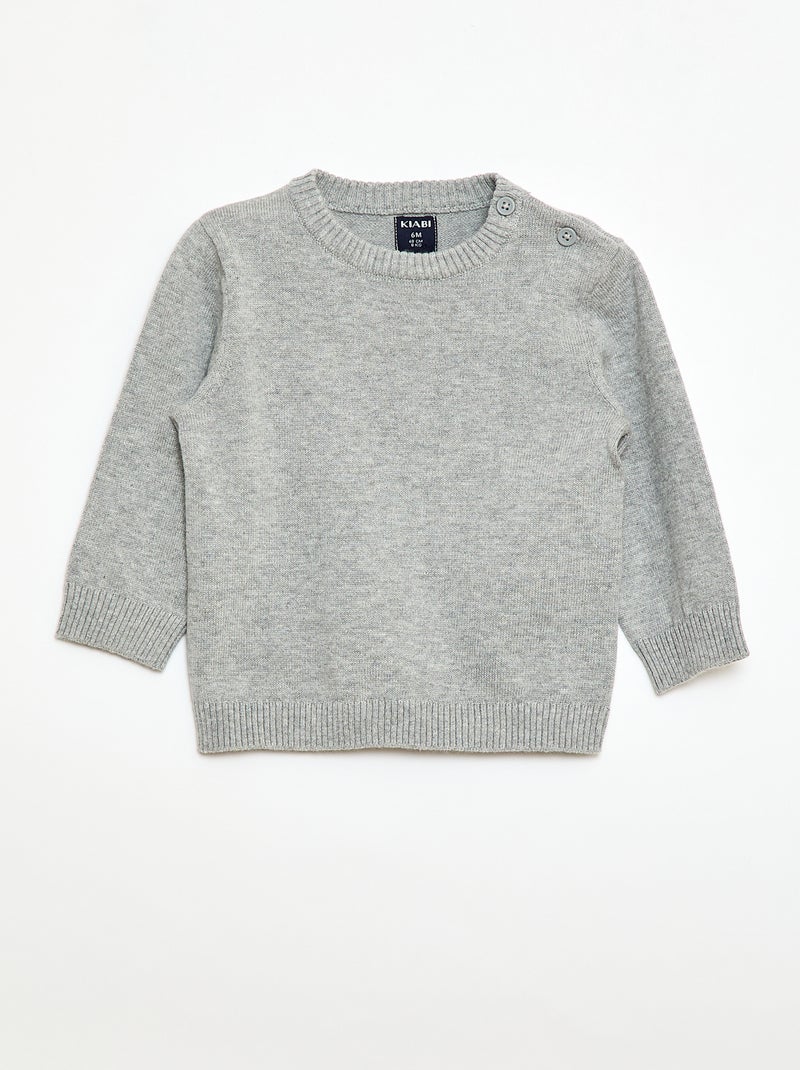 Le pull fine jauge à l'encolure boutonnée pour lui enfiler plus facilement.