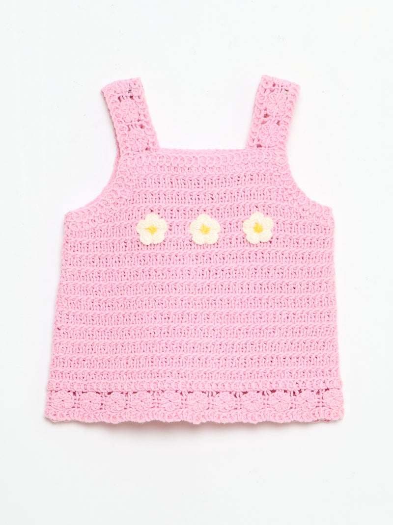 Pull sans manches en crochet avec détails 'fleurs' - Rose