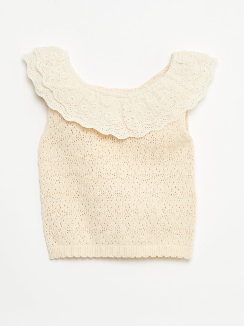 Pull sans manches en tricot - Ecru