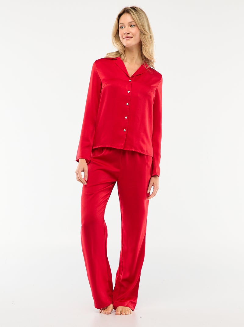 Pyjama 2 pièces effet satiné - chemise + pantalon - Rouge
