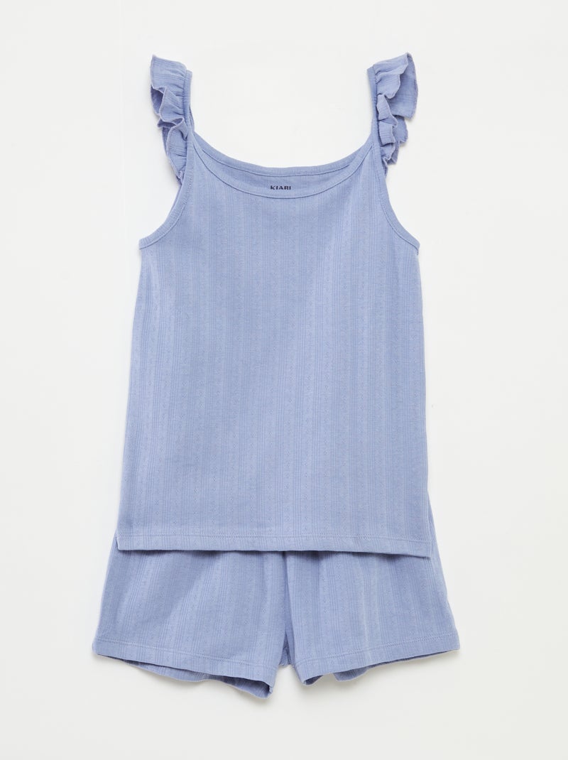 Pyjama court débardeur avec volants + short - 2 pièces - Bleu