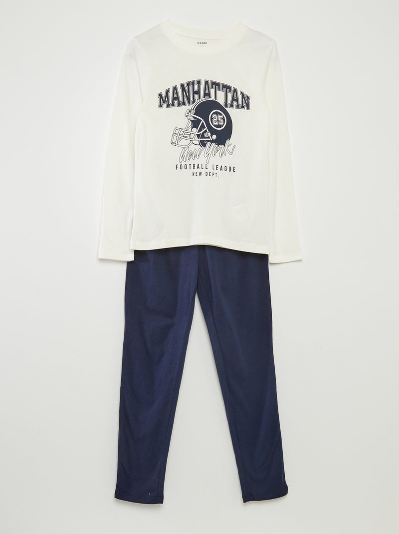 Pyjama long en jersey avec imprimé - 2 pièces - Blanc/marine
