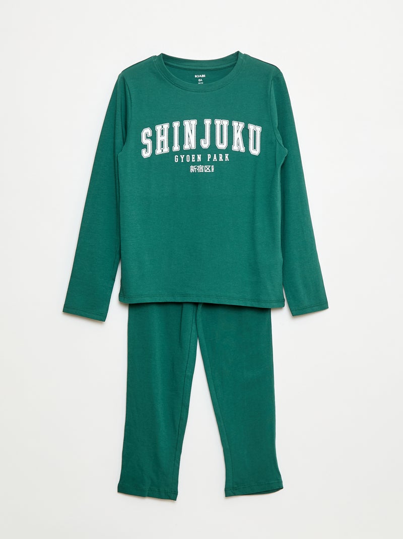 Pyjama long en jersey avec imprimé - 2 pièces - Vert