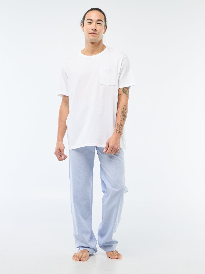 Pyjama long en popeline - 2 pièces - Bleu/blanc